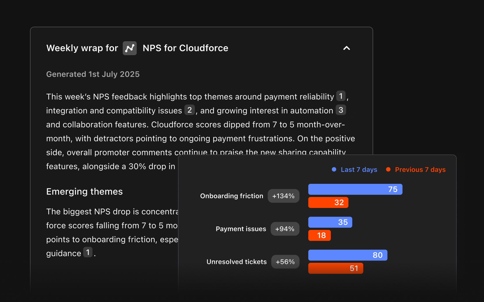 For Chloe, the Customer Success Lead for the APAC region at Cloudforce, a leading enterprise software company, a key part of her role is to keep a pulse on the health of her enterprise customers. But with thousands of customers in her book, manually monitoring their satisfaction is impossible. She used to be a reactive firefighter, constantly hearing about customer problems only after they had become major issues. Her boss would be on her case, asking why users were complaining about a specific bug or feature. Valuable customer feedback was buried in dozens of different tools and channels across teams and departments, and so she was often left sifting through mountains of spreadsheets and unreliable dashboards trying to understand the heart of these problems, and then packaging everything up to share with the product team to push them to prioritize crucial fixes.