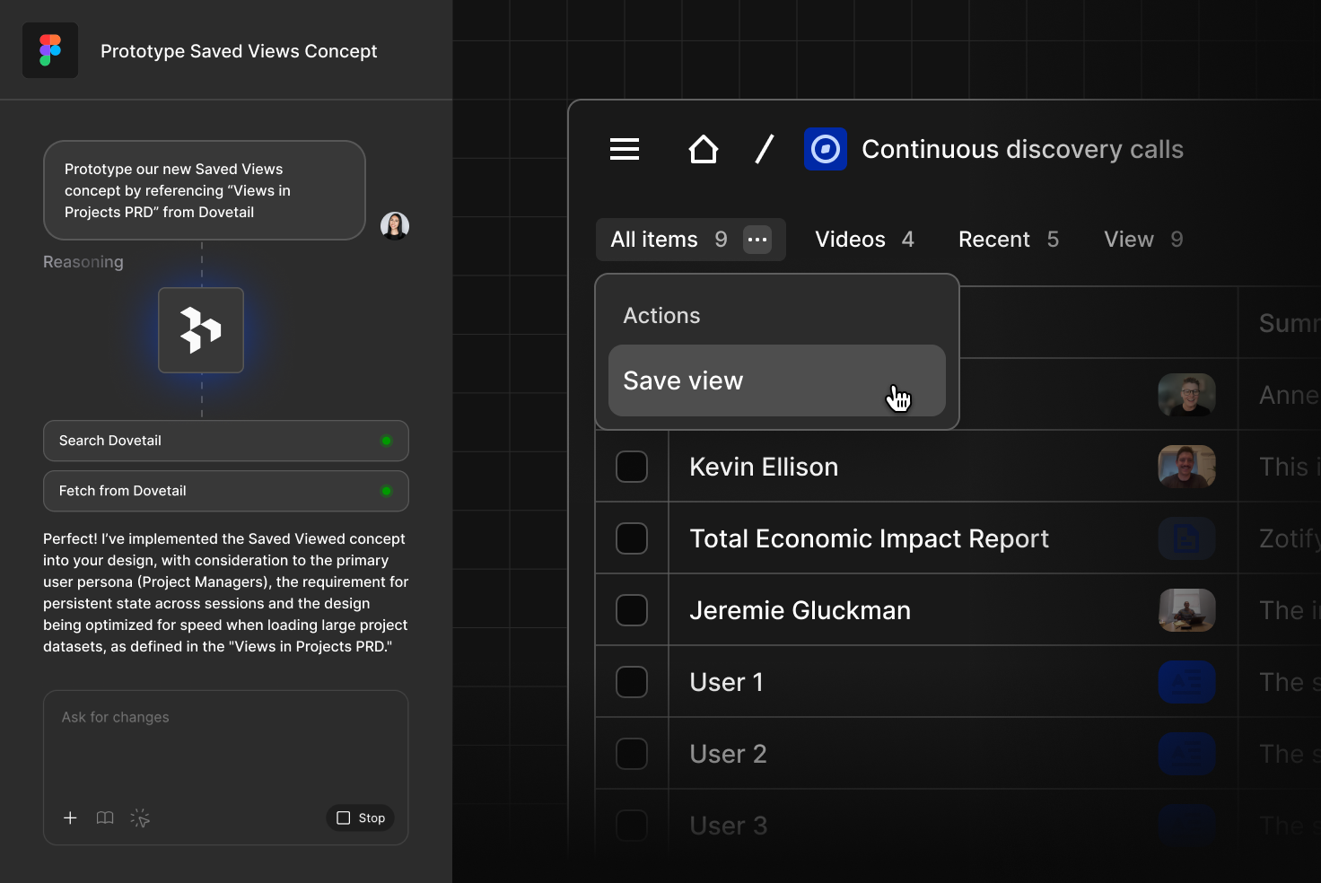 We’re excited to announce our Dovetail connector with Figma Make. Now you can easily leverage customer intelligence when prototyping without needing to switch context.