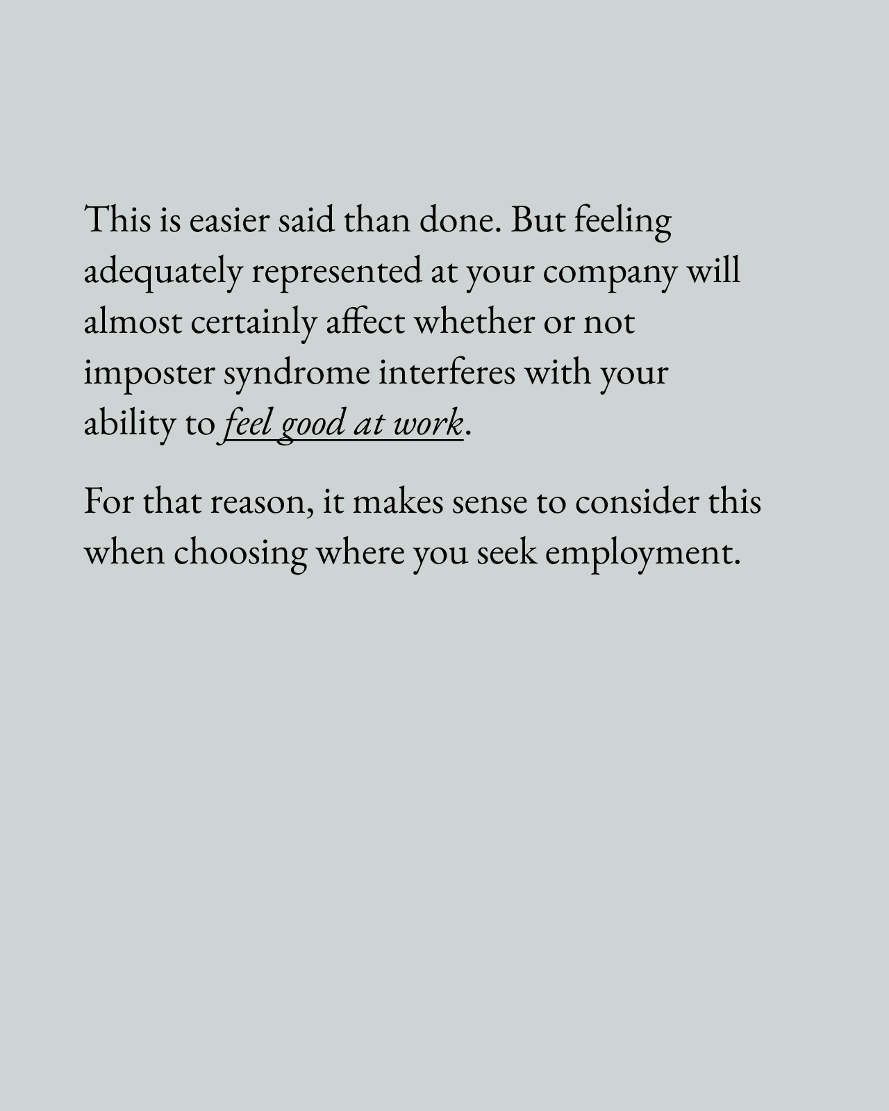 Even though we know that a diversity problem at a particular organization or within the tech industry is completely unrelated to our own professional capabilities, the experience of being underrepresented lends itself to a subconscious self-doubt imposed on us by our environment.