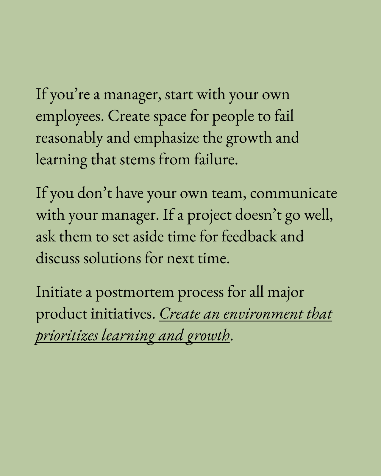 At the core of feelings of inadequacy is fear. Mistakes are rungs on the ladder of learning and improving as a product professional. When your organization or management team treats mistakes as grounds for being blamed, dismissed, or worse, it engenders a systemic fear of failure.