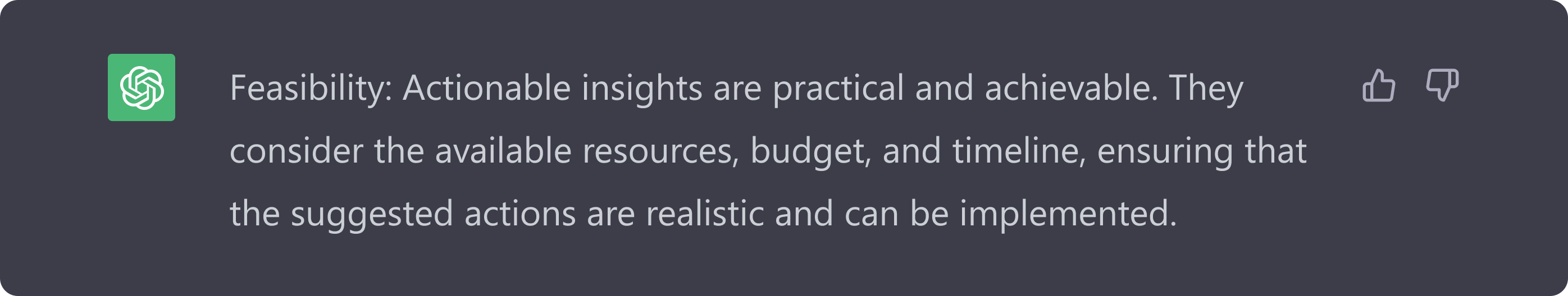 While the first sentence is essentially a restatement of the original, ChatGPT identified that the original insight wasn’t “Actionable.”