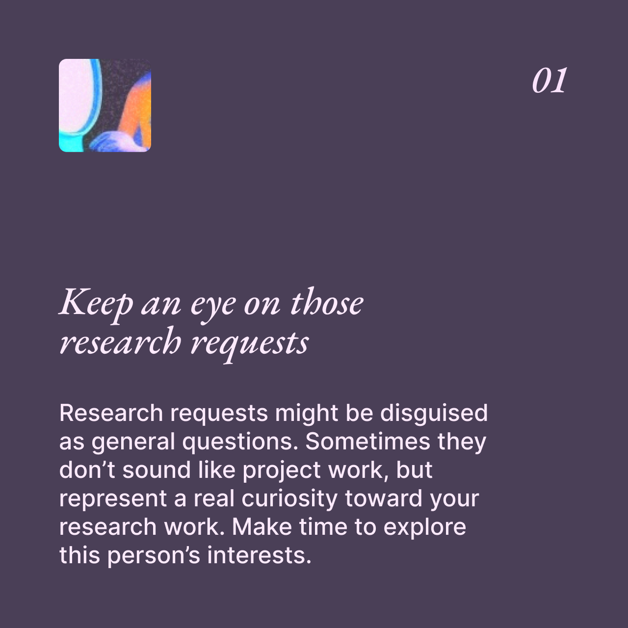 Non-researchers: You might be looking forward to your organization bringing on their first researcher. My wish is for you to feel employed to reach out to them for what could be a life-changing collaboration.