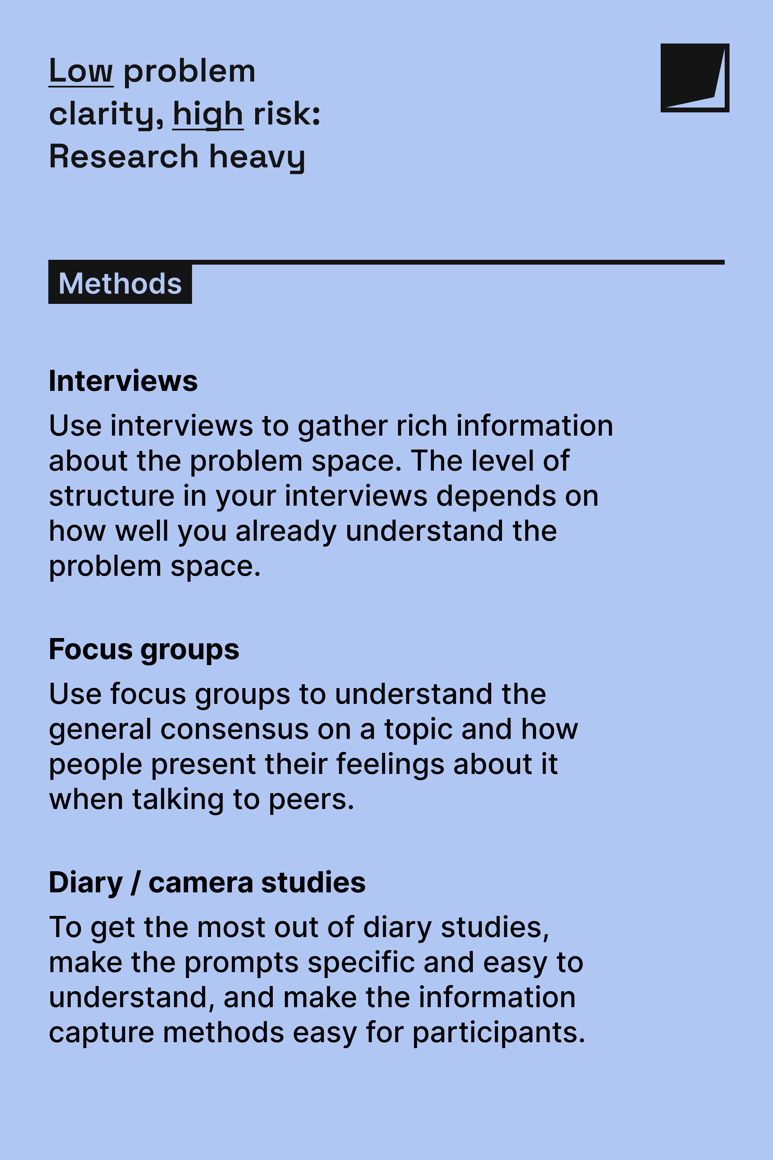 When your researchers deliver insights and recommendations, they’ll let you know to what extent this applies to your overall user base or if it only applies to specific segments. From there, you can decide which insights and recommendations have the best shot at helping you meet your current goals.