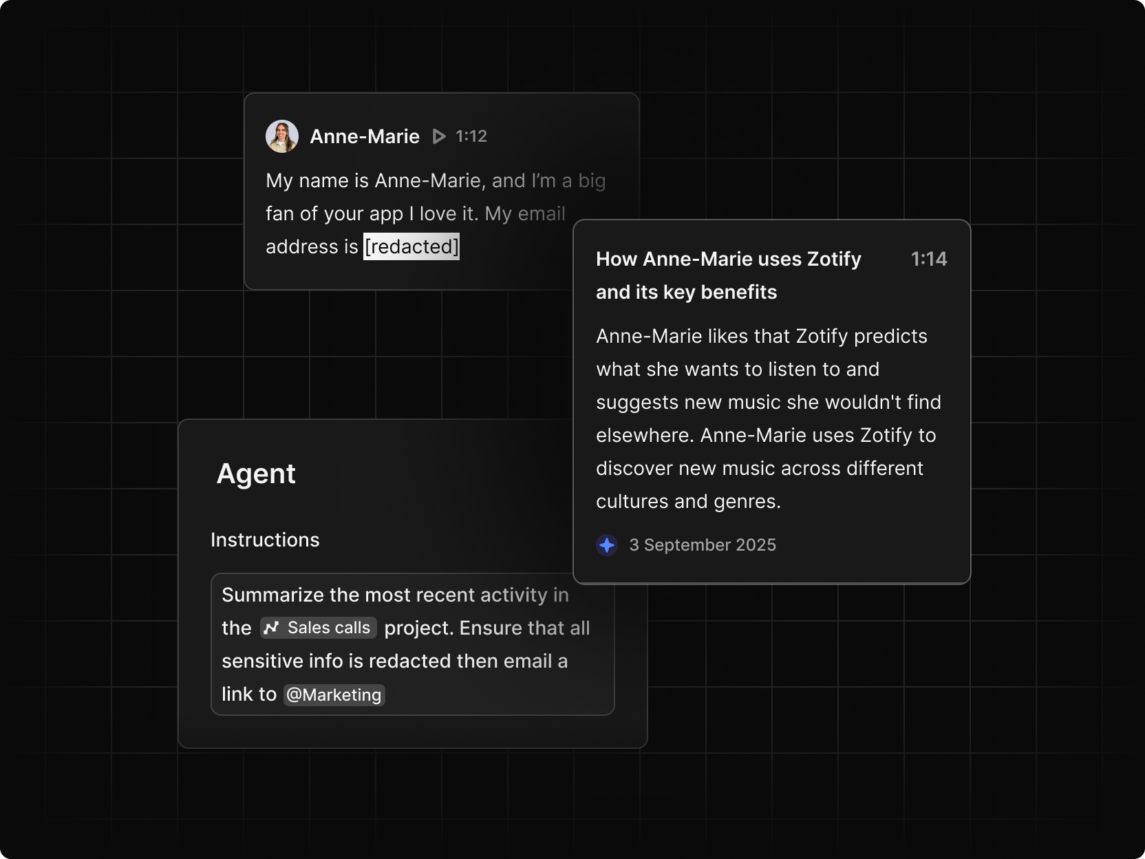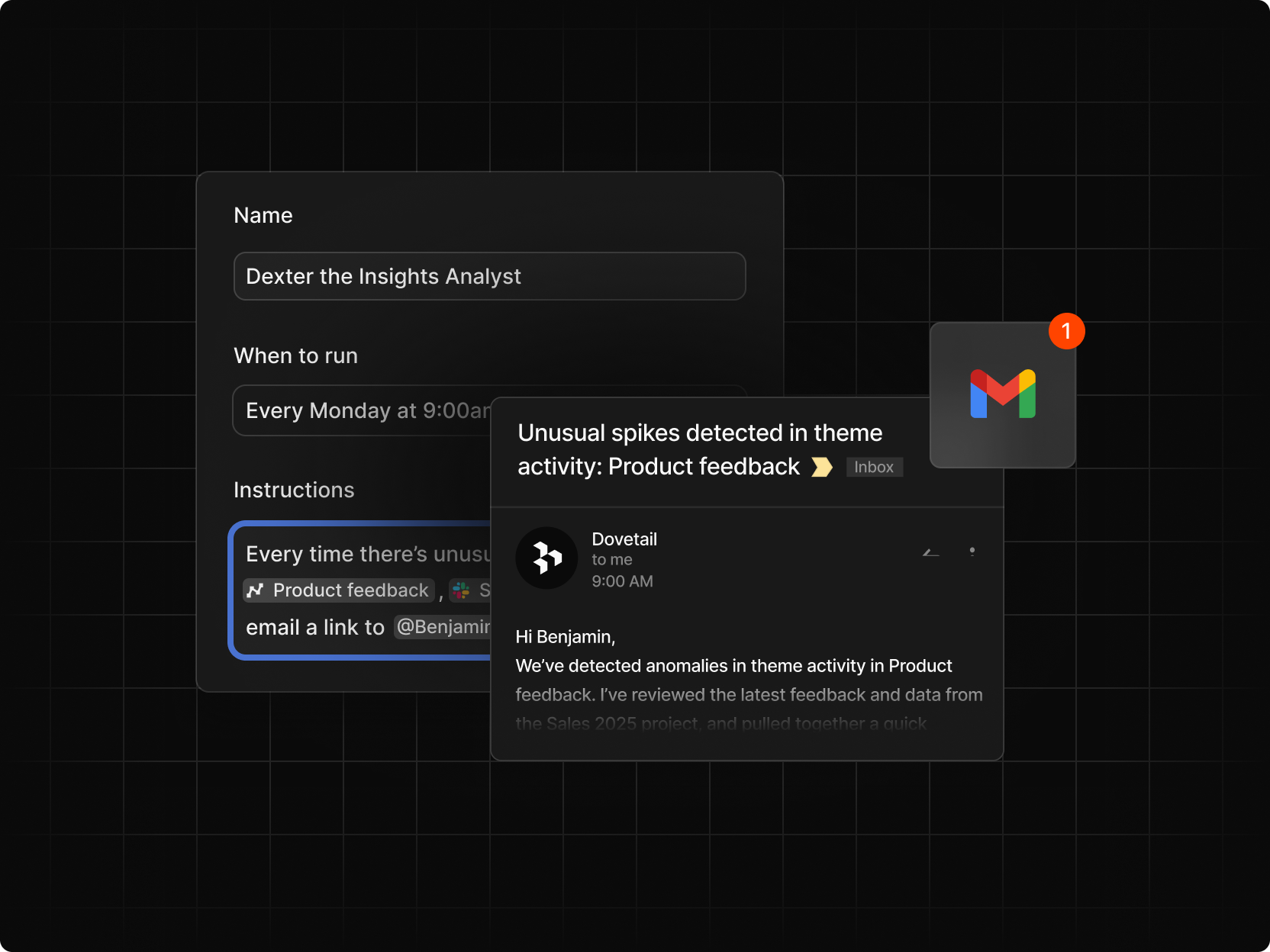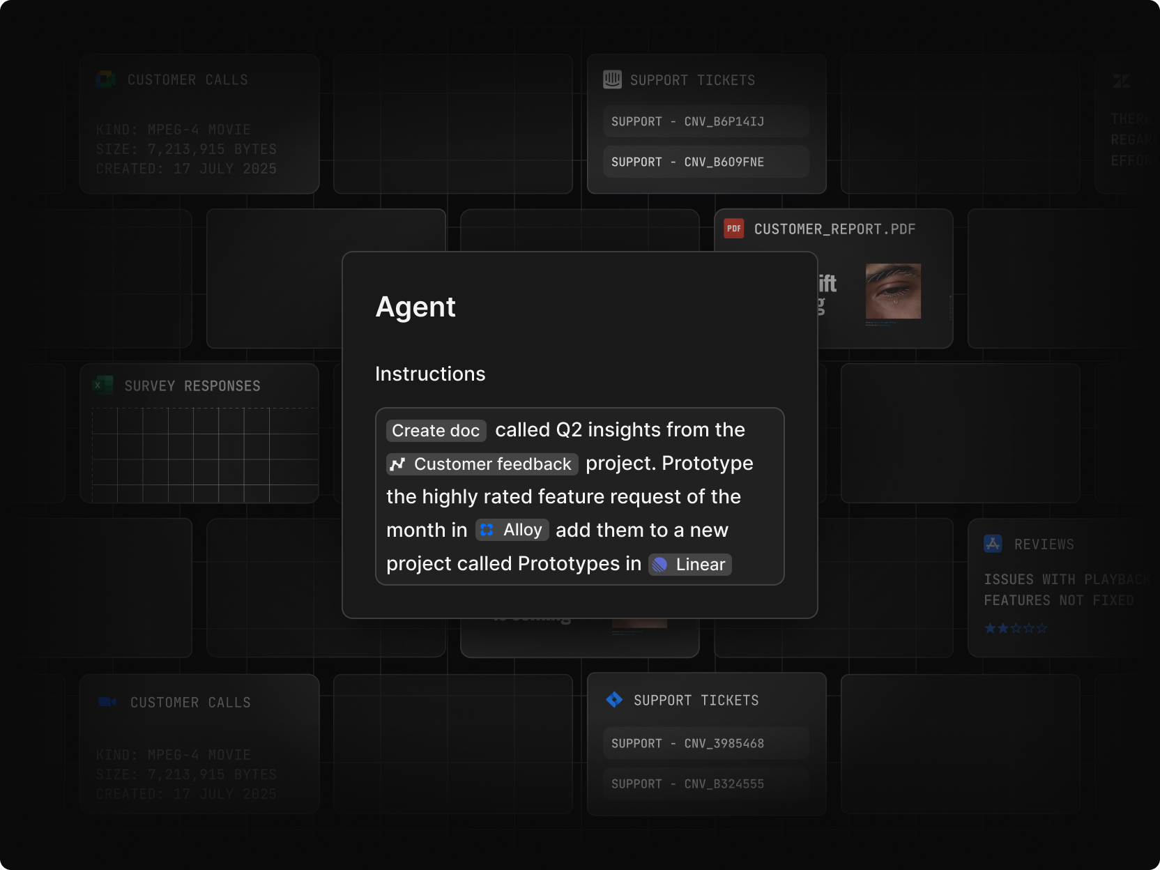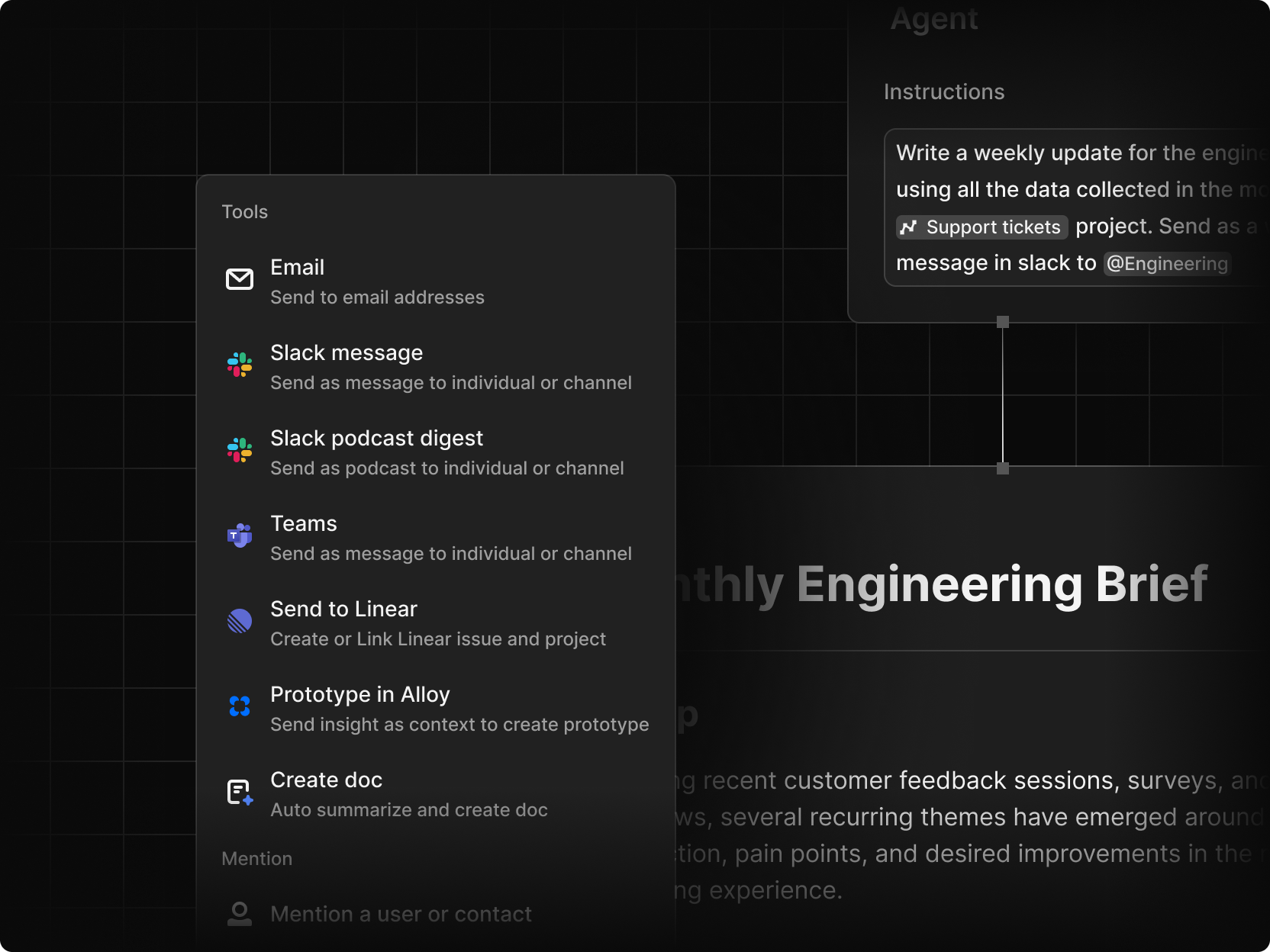 Agents don’t just summarize. They orchestrate workflows across Dovetail.